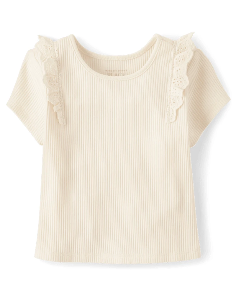 Toddler Girls Embroidered Eyelet Ribbed Flutter Tee