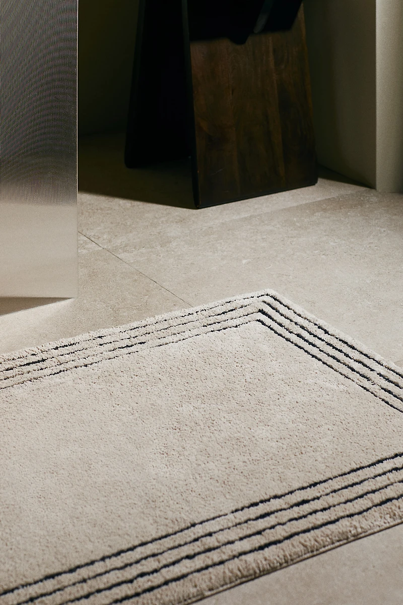 Bath mat in tufted cotton with a soft, cozy feel. High contrast border at front and non-slip protection at back.