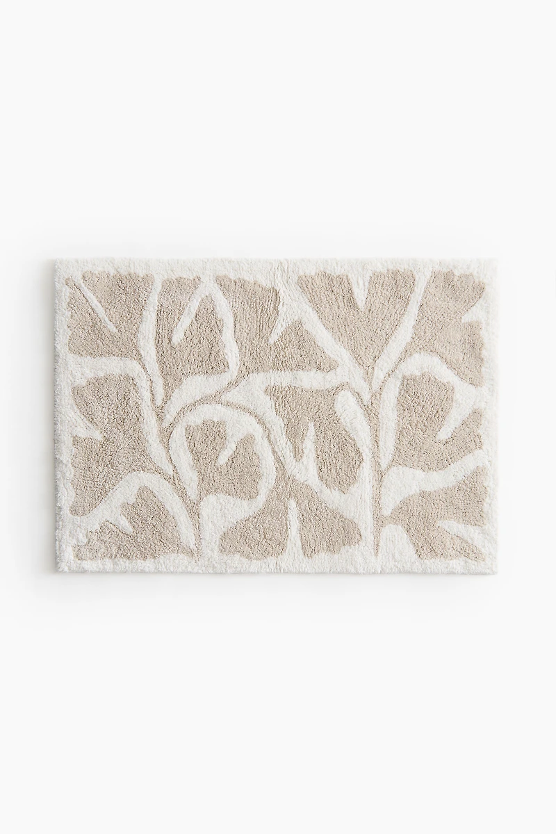 Bath mat with a tufted pattern in cozy, thick woven cotton. Non-slip protection at back.