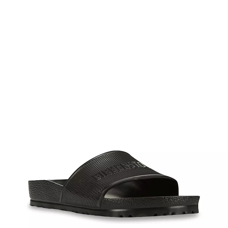These unisex Birkenstock Barbados black sandals are packed with on-trend style and reliable comfort. Designed with a single-piece of waterproof EVA, these lightweight sandals have an open toe, hexagon-textured design and logo embossing, anatomically contoured signature footbed, and non-slip traction sole.