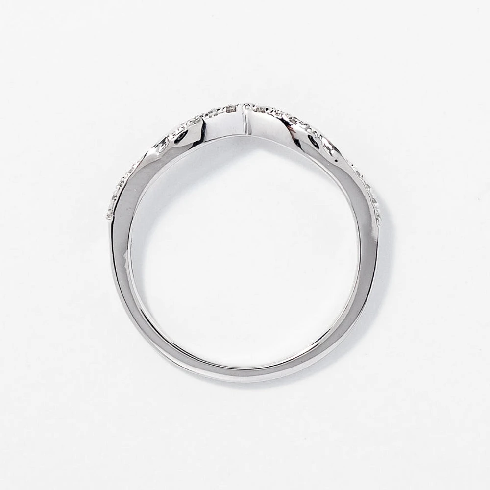 Celebrate your special milestone with timeless elegance embodied in this lovely V-Shape Diamond Wedding Band. Finely crafted in14K white gold, this ring boasts 19 exquisite diamonds with a combined total diamond weight of 0.13 carats. Let its radiant sparkle symbolize the brilliance of your journey together.