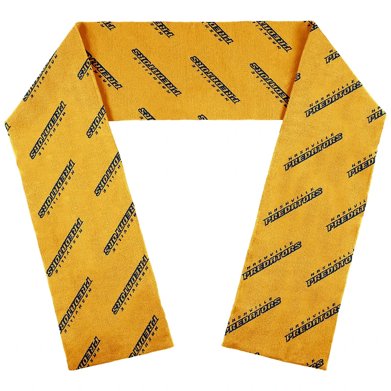 During chilly weather, bring warmth and team spirit in chic fashion with this Nashville Predators scarf from WEAR by Erin Andrews. It features the Nashville Predators wordmark in a repeating pattern on both sides to keep your fandom visible. The solid fabric provides a versatile look that complements many different outfits.