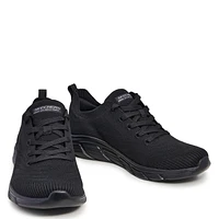 Exude a classic style in these women's Skechers Bobs Sport™ B Flex Lo black/black fashion athletic sneakers. Made of athletic knit upper for breathable comfort, these 100% vegan-friendly casual shoes have a round toe and lace-up closure. The Skechers Memory Foam™ insole provides excellent cushioning support. Features include Skechers Bobs Sport™ logo detail for a sporty authentic look, breathable textile lining, and a flexible EVA outsole with chevron tread pattern for reliable traction.