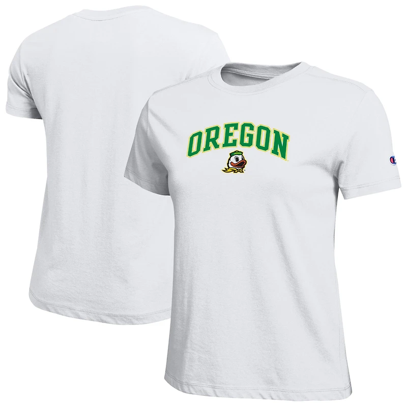 Women's Champion  White Oregon Ducks Arched Over Logo T-ShirtWomen's Champion  White Oregon Ducks Arched Over Logo T-ShirtWomen's Champion  White Oregon Ducks Arched Over Logo T-ShirtWomen's Champion  White Oregon Ducks Arched Over Logo T-Shirt