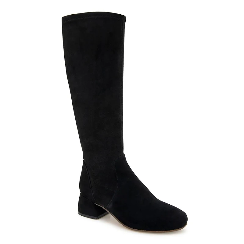 The Women's Emily Stretch Boot by Gentle Souls features a soft suede upper designed for a comfortable fit, complemented by a cushioned block heel that provides stable all-day support. Its almond-shaped toe offers a streamlined silhouette, combining durable materials and ergonomic design to deliver both comfort and refined style in a versatile boot.