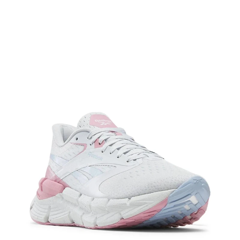 Your long weekend run has met its match. These women's Reebok running shoes are built with high-rebound Floatride Energy Foam in a geometry that provides a lightweight feel and returns energy with every step. A dual-density midsole smooths out the ride and adds stability over the miles. The elevated stack height puts more foam underfoot for high-mileage running.