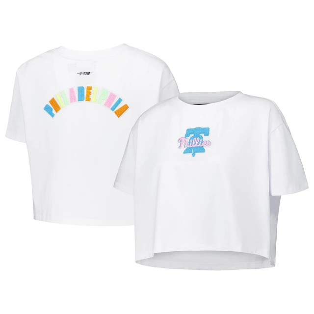 Women's Pro Standard White Philadelphia Phillies Washed Neon Cropped Boxy T-Shirt