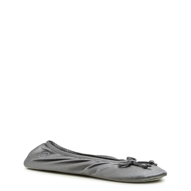 - Soft satin upperPull-on designRound toe with bow detailCushioned cotton-blend terry socklinerIsoflex comfort system conforms and flexes with your feetMachine wash cool water. Dry flat away from heatGenuine leather outsole