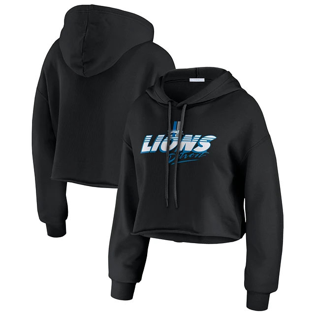 Women's WEAR by Erin Andrews Black Detroit Lions Prime Cropped Pullover Hoodie