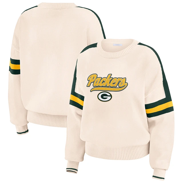 Women's WEAR by Erin Andrews Cream Green Bay Packers Stripe Pullover Sweater