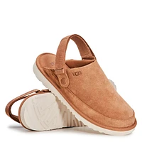 These Youth Girls' Ugg K Goldenstar Clog chestnut Slipper feature a soft suede upper and a cozy suede lining for luxurious comfort.Designed with a slip-on style and an adjustable slingback strap, these slippers offer a secure fit and easy wear. The cushioned footbed and durable EVA sole provide all-day support, making these slippers perfect for relaxed, comfortable moments.