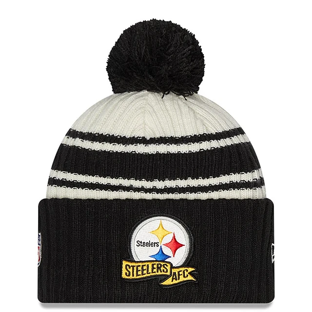 Men's New Era Cream/Black Pittsburgh Steelers 2022 Sideline - Sport Cuffed Pom Knit Hat