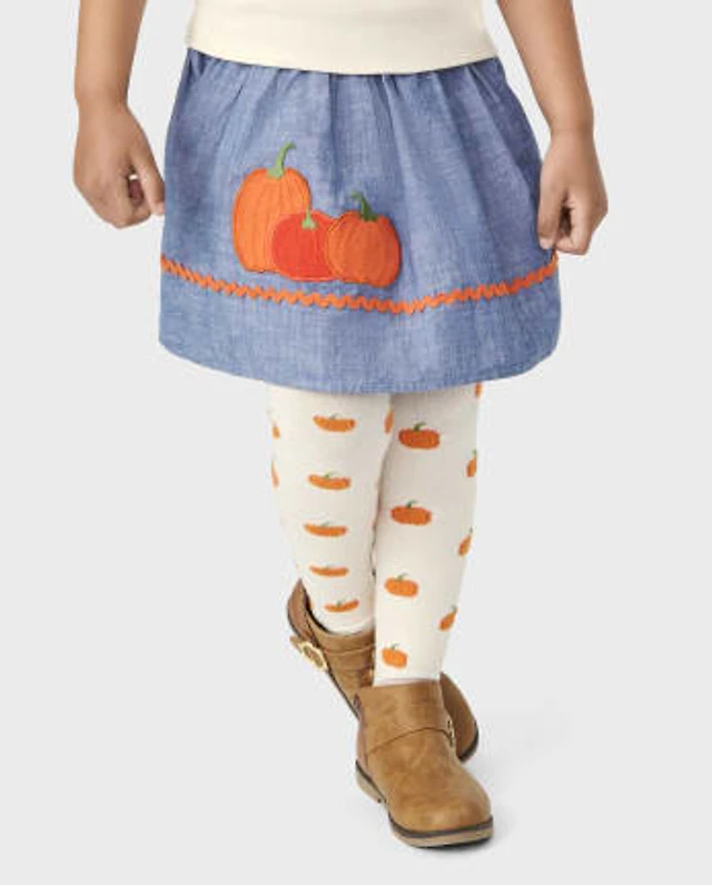 Girls Embroidered Pumpkin Chambray Skort - Lil'
