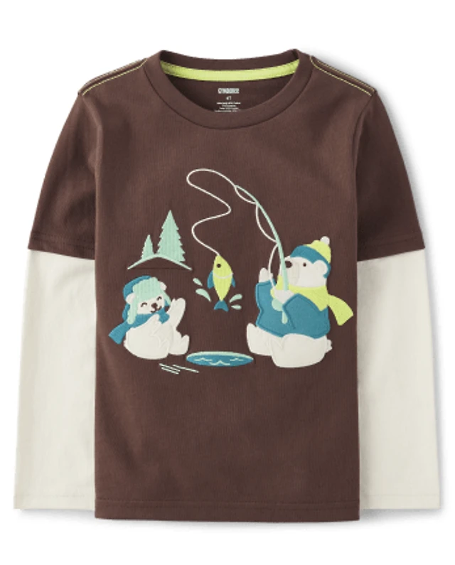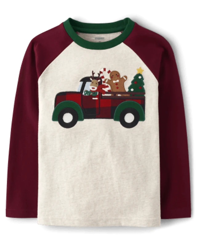 Boys Embroidered Gingerbread Sled Layered Top - Christmas Cabin