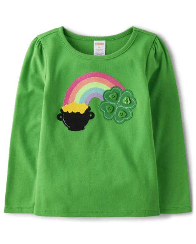Girls Embroidered Shamrock Top - Little Leprechaun