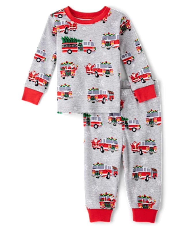 Baby And Toddler Santa Fire Truck Snug Fit Cotton Pajamas