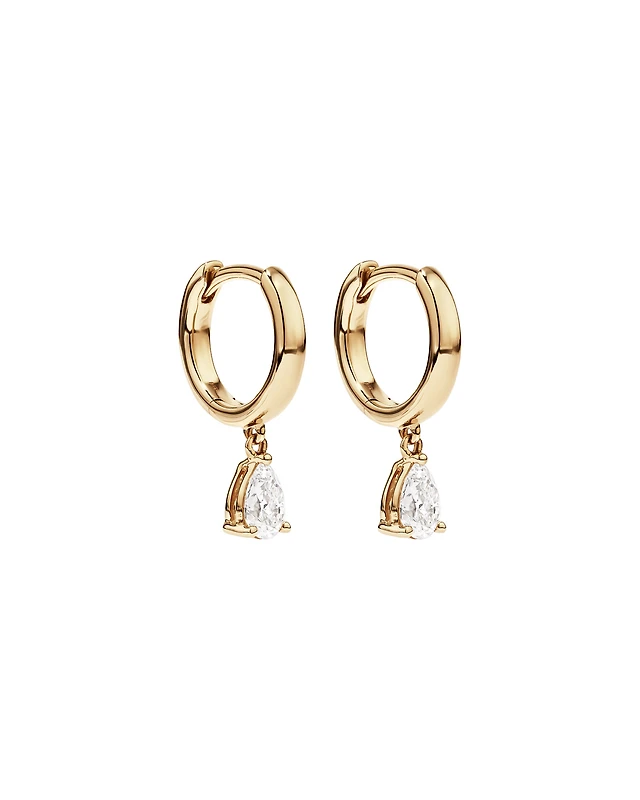 Lume Lab Huggie Earrings with 1.00 Carat TW Pear & Round Brilliant Laboratory-Grown Diamonds in 10kt Yellow Gold
