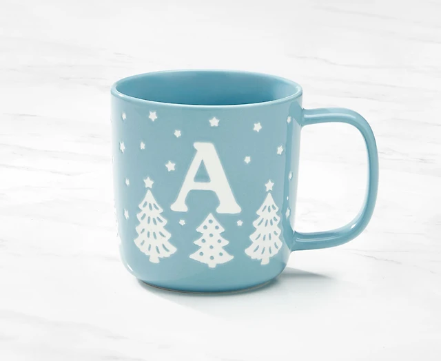 Monogram Mug Snowflake design and Letter R, Navy and White, 370ML