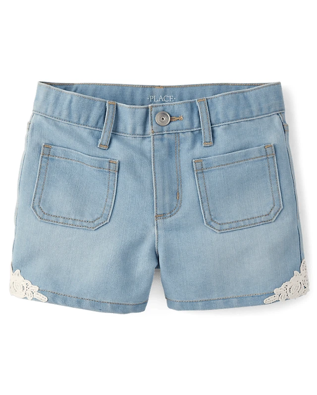Girls Crochet Medallion Shortie Jeans Shorts