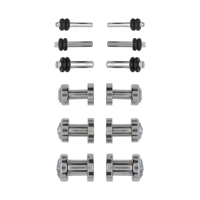 Multi-Pack CZ Silvertone Plugs - 6 Pair
