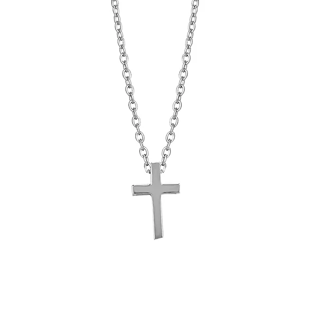 Cross Pendant with Cubic Zirconia in Stainless Steel with Chain
