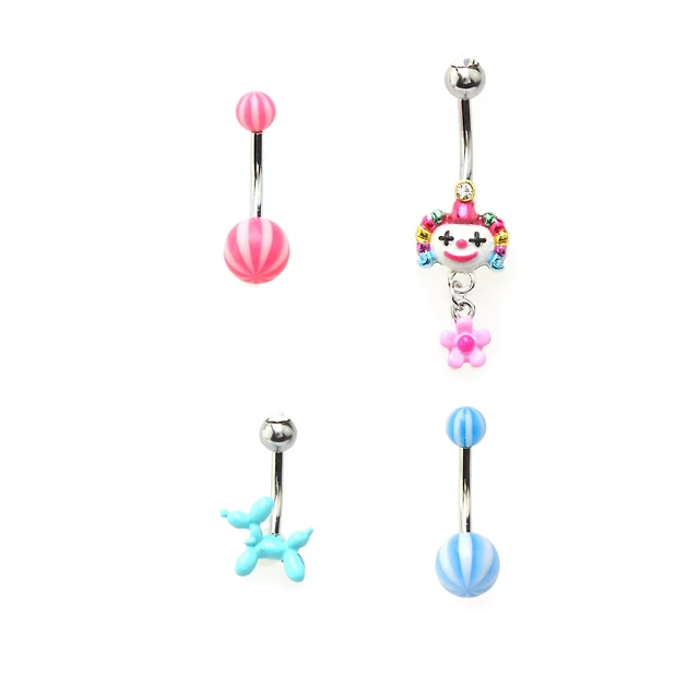Multi-Pack CZ Circus Belly Rings 4 Pack - 14 Gauge