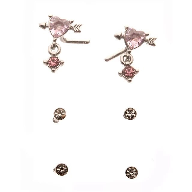Multi-Pack Lovestruck Heart Dangle and Basic Nose Pins 6 Pack - 20 Gauge