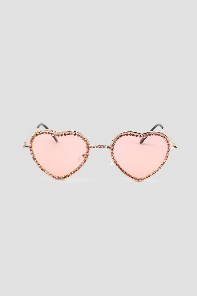 Ardene Embellished Heart Shaped Sunglasses in Gold