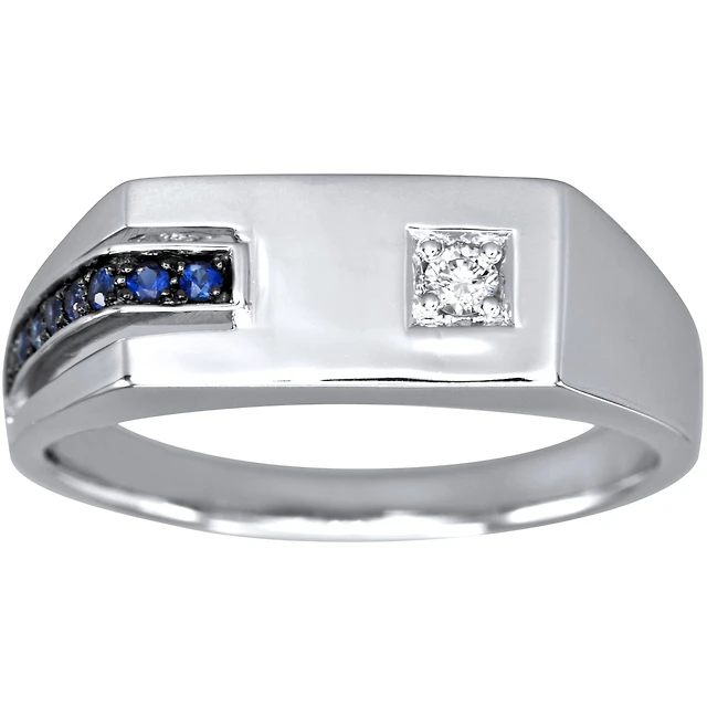 Oval Blue Sapphire and Diamond Ring 10K White Gold (0.08ct tw)