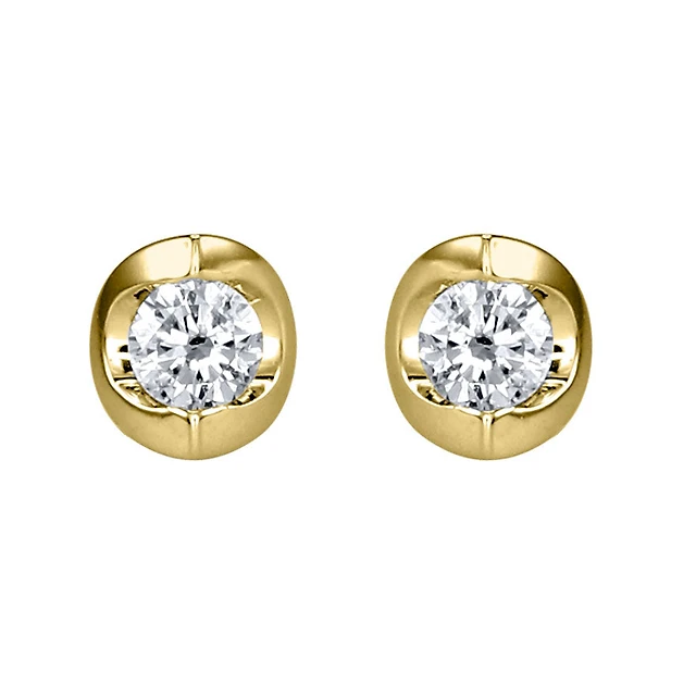 10K Yellow and White Gold Diamond Solitaire Stud Earrings (0.22 ct tw)