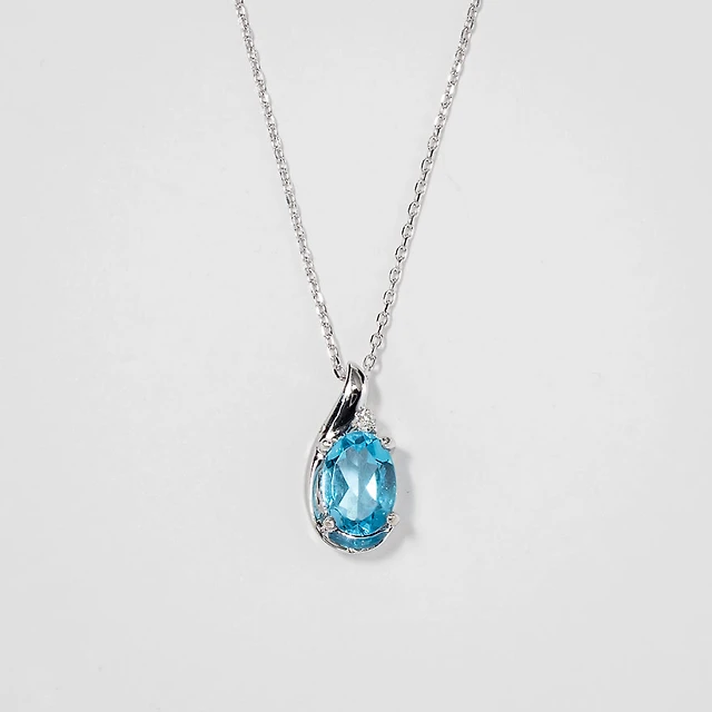 Blue Topaz Pendant Necklace in 10K White Gold