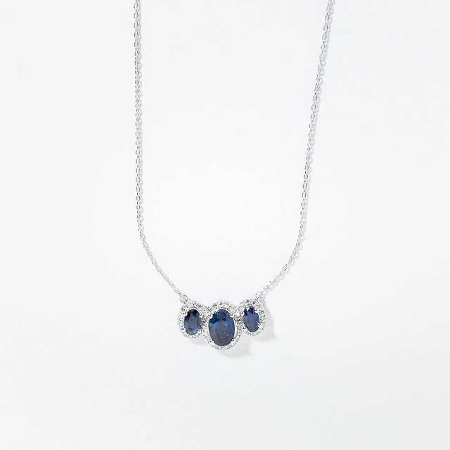 Sapphire and Diamond Pendant Necklace in 10K White Gold