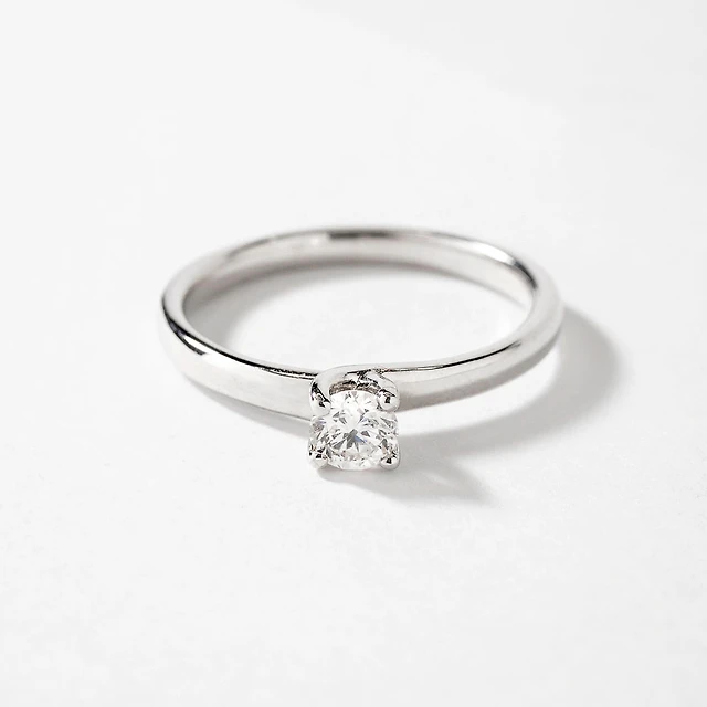 Lab Grown Round Cut Diamond Engagement Ring 14K White Gold ( ct
