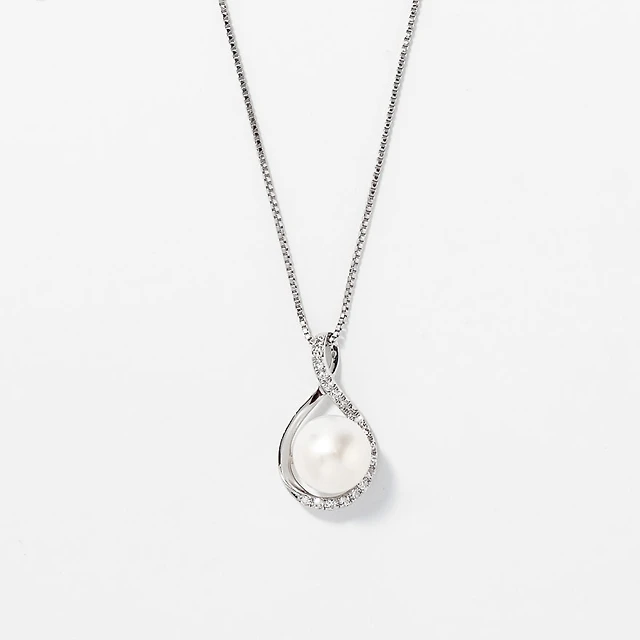 Cultured Pearl and Diamond Pendant in 14K White Gold
