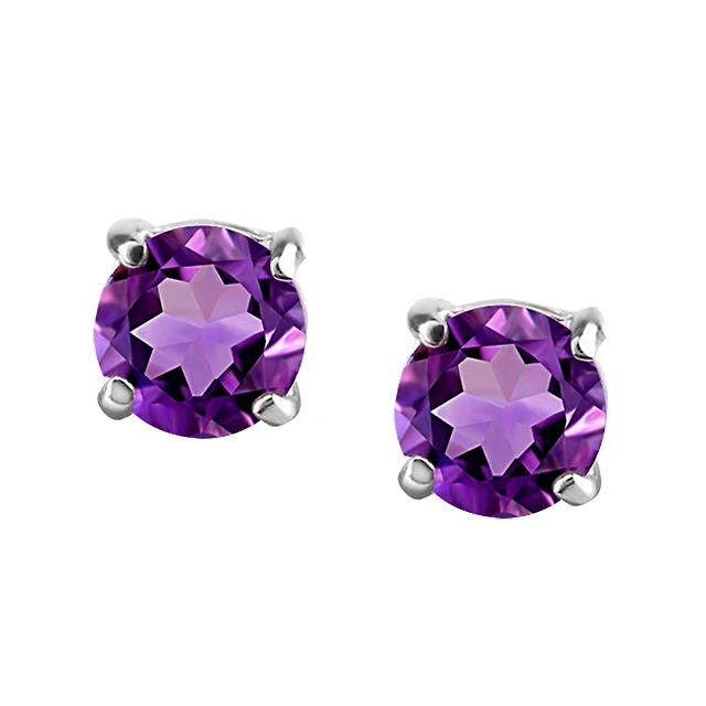 4MM Stud Earrings With Smoky Quartz In 14kt White Gold