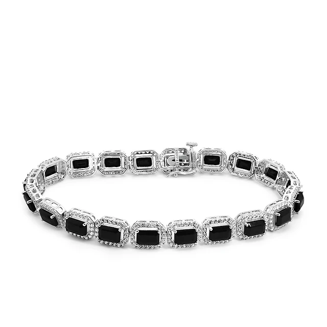 7.5″ Tennis Bracelet with 6x4MM Black Onyx and Cubic Zirconia in Sterling Silver