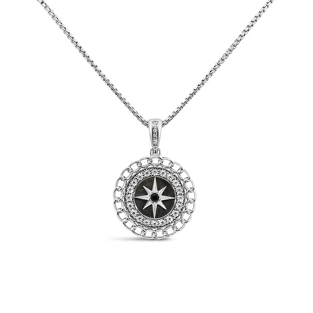 Compass Medallion Pendant with .20 Carat TW of Diamonds in Sterling Silver with Chain