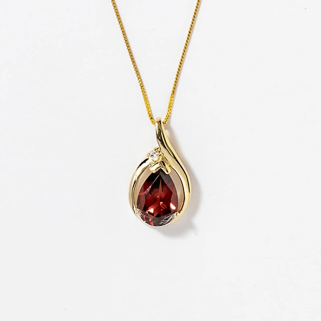 Garnet Hook Earrings with Diamond Accents in 10K Yellow Gold