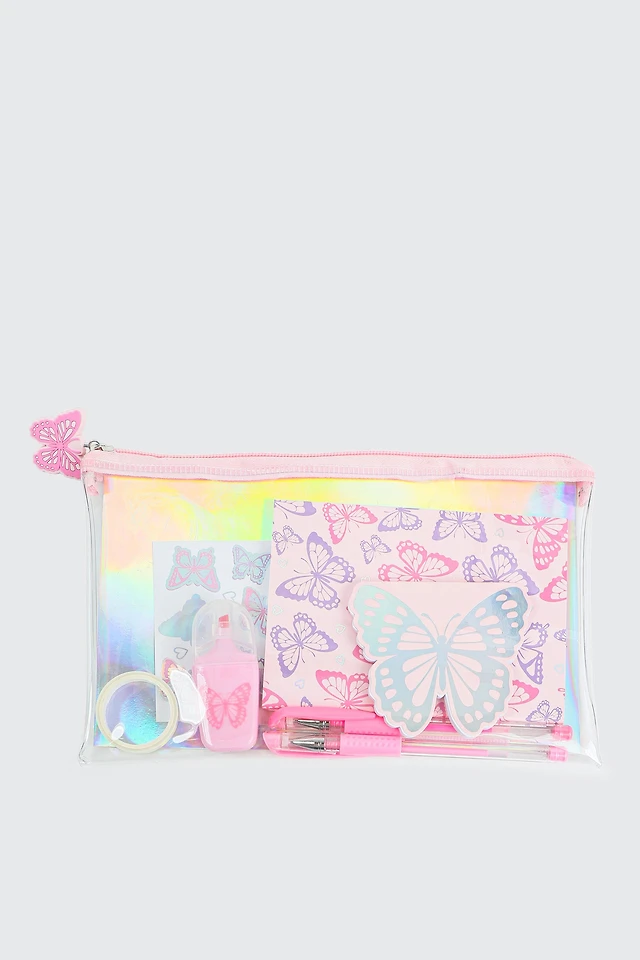 Ardene Kids Butterfly Stationery Set in Light Pink