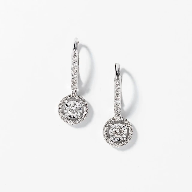 Lab Grown Diamond Dangle Hoop Earrings in 14K White Gold (1.20 ct tw)