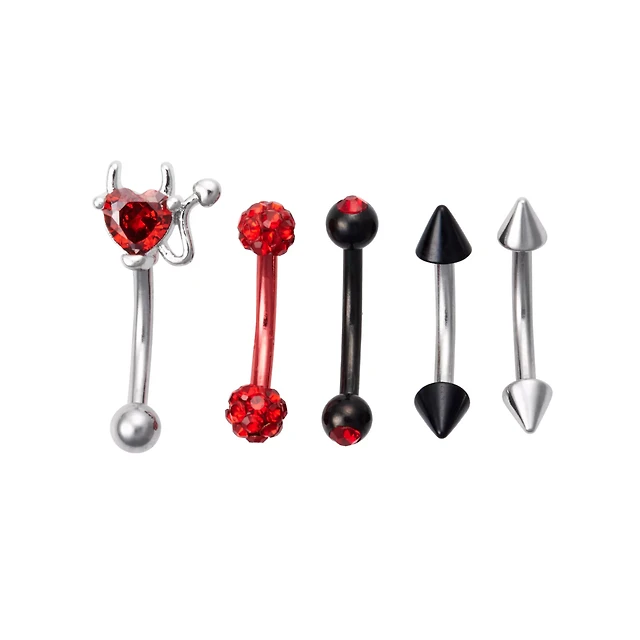 Multi-Pack Red CZ Devil Diamond Heart Curved Barbells 5 Pack - 16 Gauge