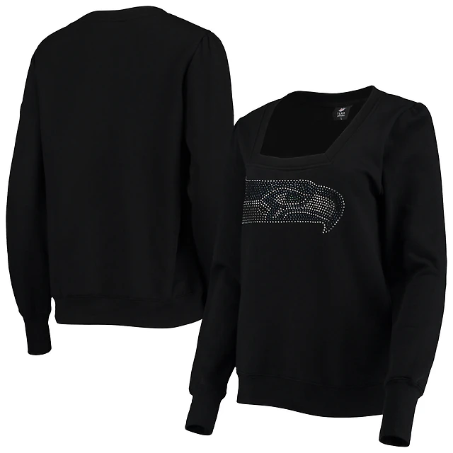 Women's Cuce Black Seattle Seahawks Winners Square Neck Pullover Sweatshirt