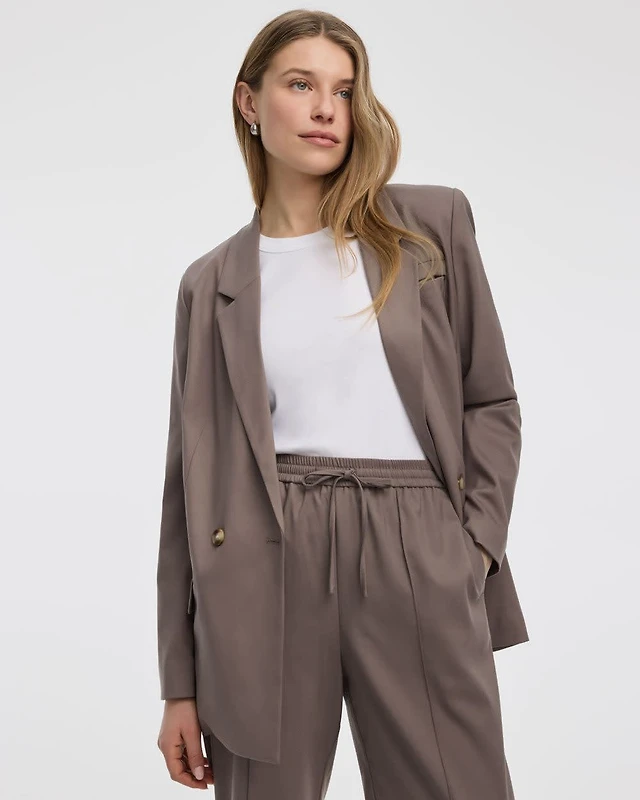 Faux Suede Double-Breasted Blazer
