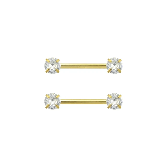 Clear CZ 14K Gold-Plated Nipple Barbells - 14 Gauge