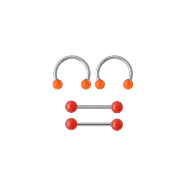 Multi-Pack Orange and Red Shimmer Nipple Barbells and Horseshoe Rings 2 Pairs - 14 Gauge