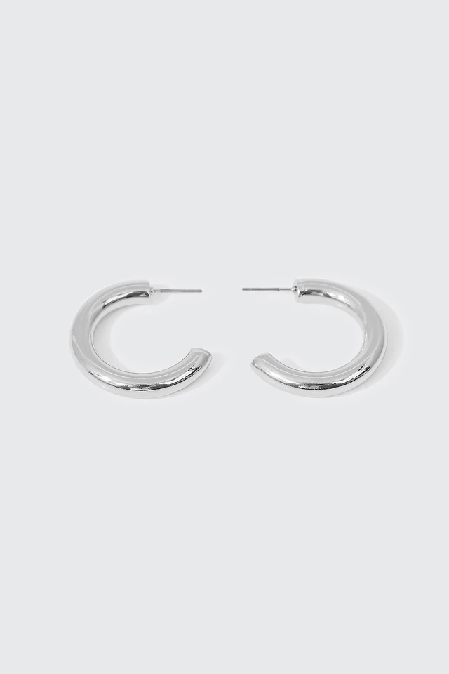 Ardene Embellished Rectangular Hoop Earrings in Silver | Stainless Steel