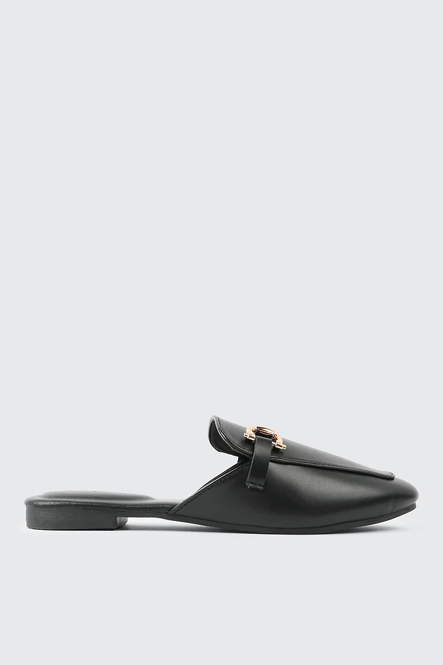 Ardene Loafers with Metal Ornament in Black | Size | Faux Leather