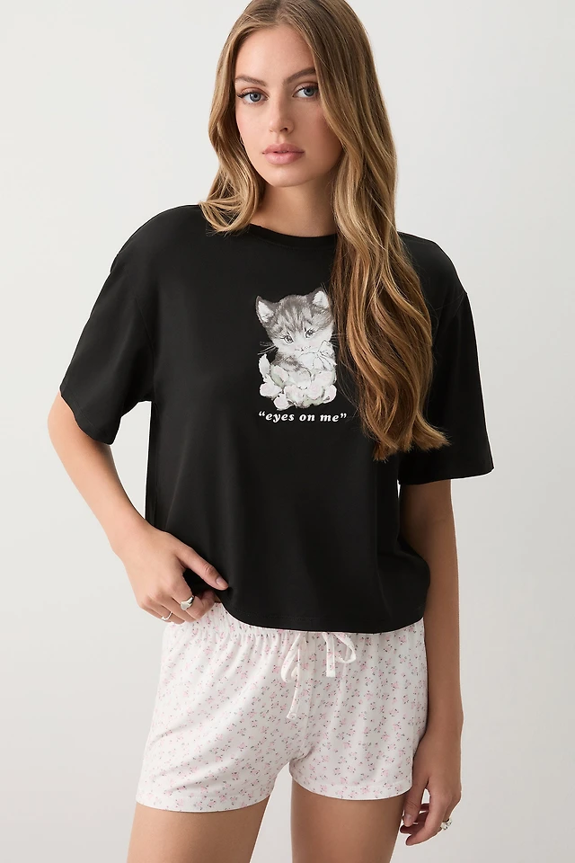 Ardene Boxy PJ Set in | Size | Polyester/Spandex | Eco-Conscious