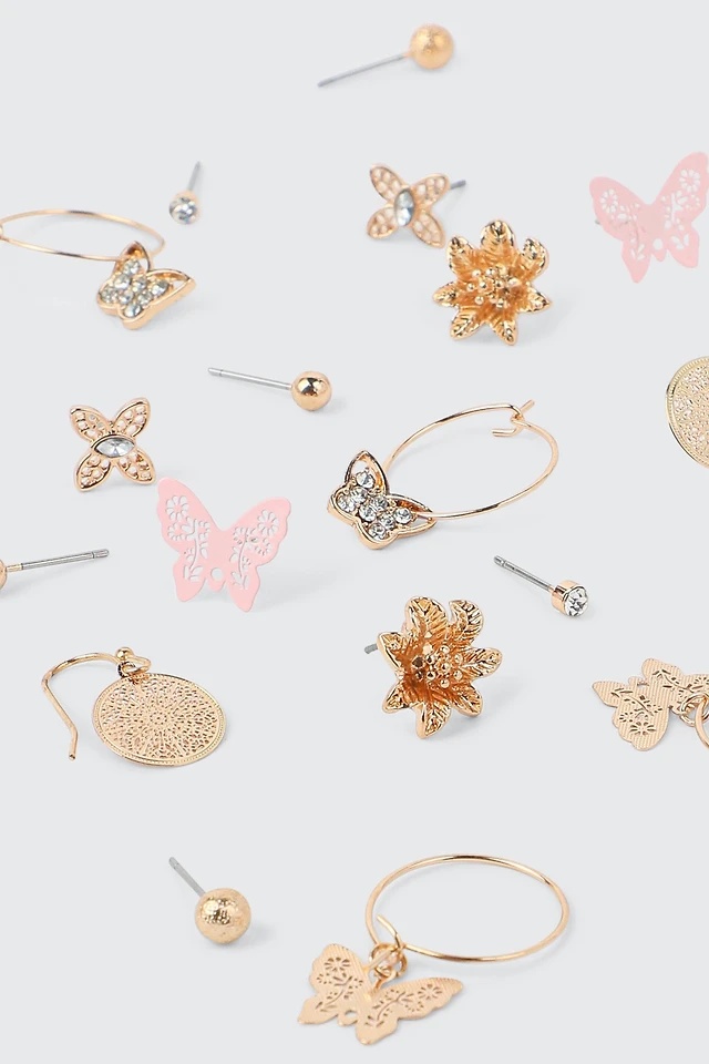 Ardene 3-Pack Crystal & Heart Hoops in Gold | Stainless Steel