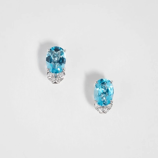 Blue Topaz Earrings with Diamond Leaf in 10K Yellow Gold